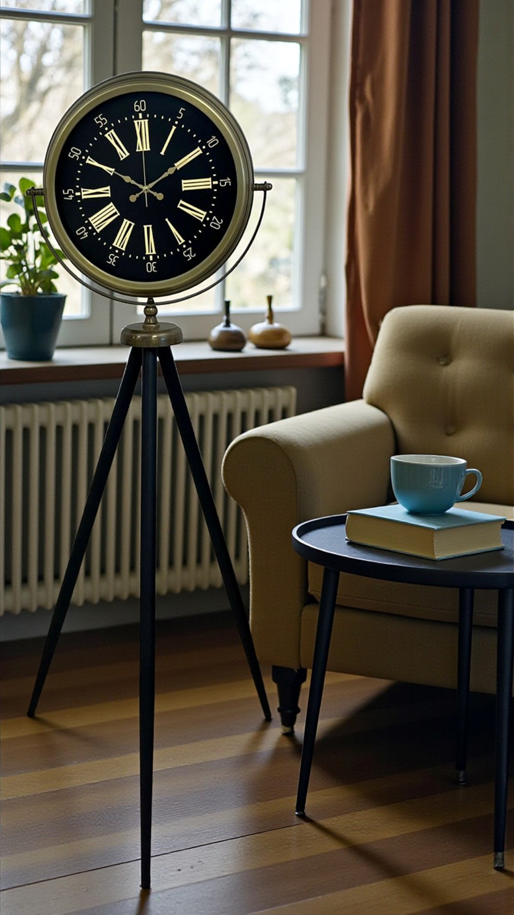 ✅ Tripod Ayaklı Yer Saati: Dengeli, sağlam ve dekoratif duruş.