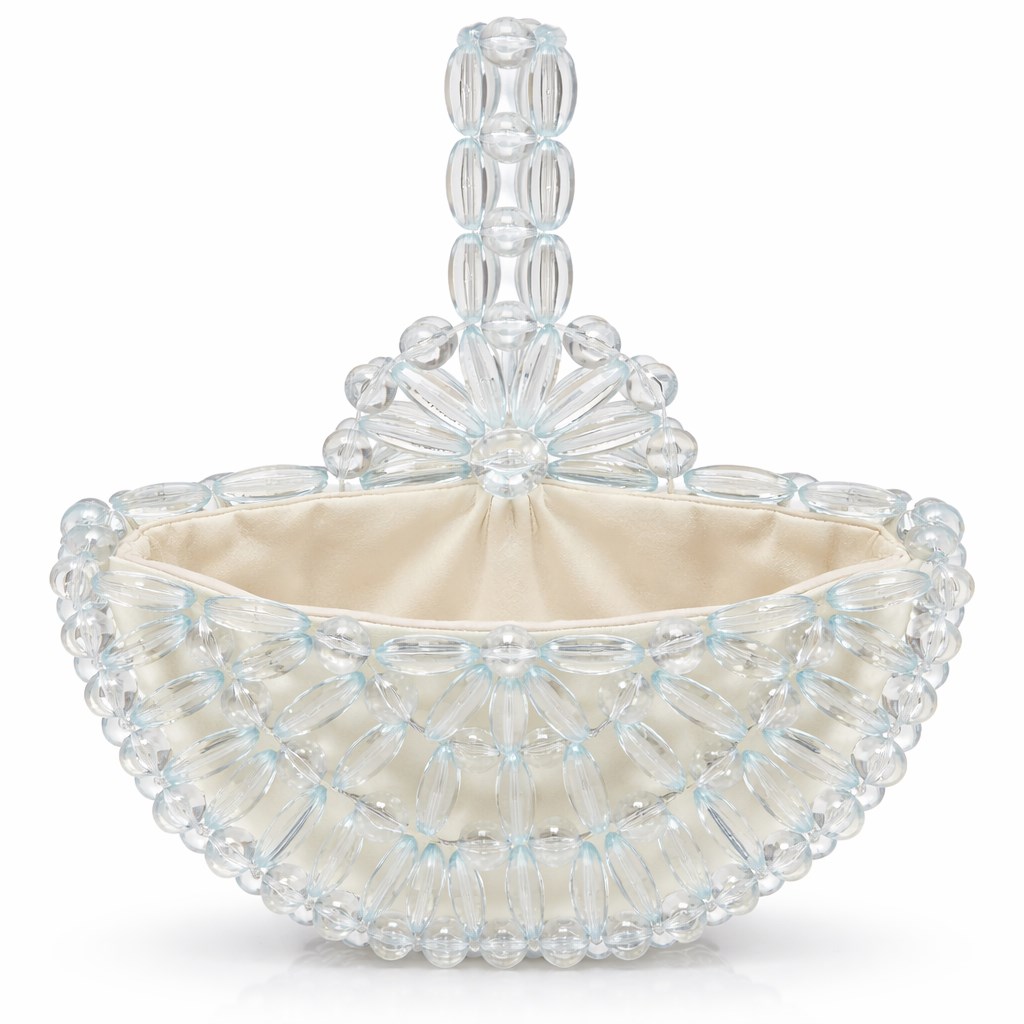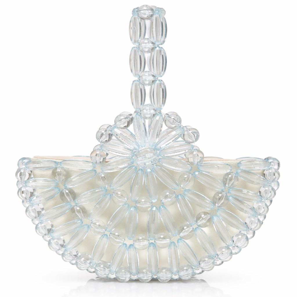 Atelier Emine’in Crystal Gelato Couture koleksiyonuna ait Melo Snowfall, merkezden dışa doğru genişleyen radyal örgü mimarisiyle tasarlanmış, heykelsi karaktere sahip premium el yapımı kristal mini çanta modelidir.