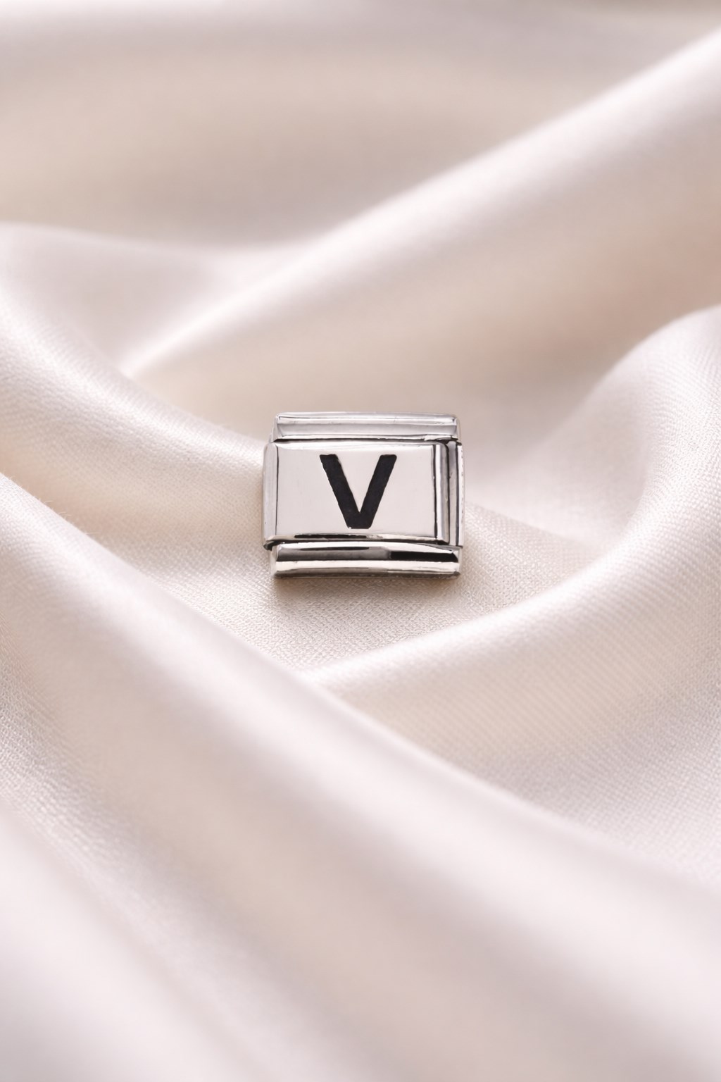 Nomination bilekliklerle uyumlu V harfi charm, sade tasarımı ve parlak çelik görünümüyle hem günlük kombinlerde hem de özel anlarda şıklığınızı tamamlar.