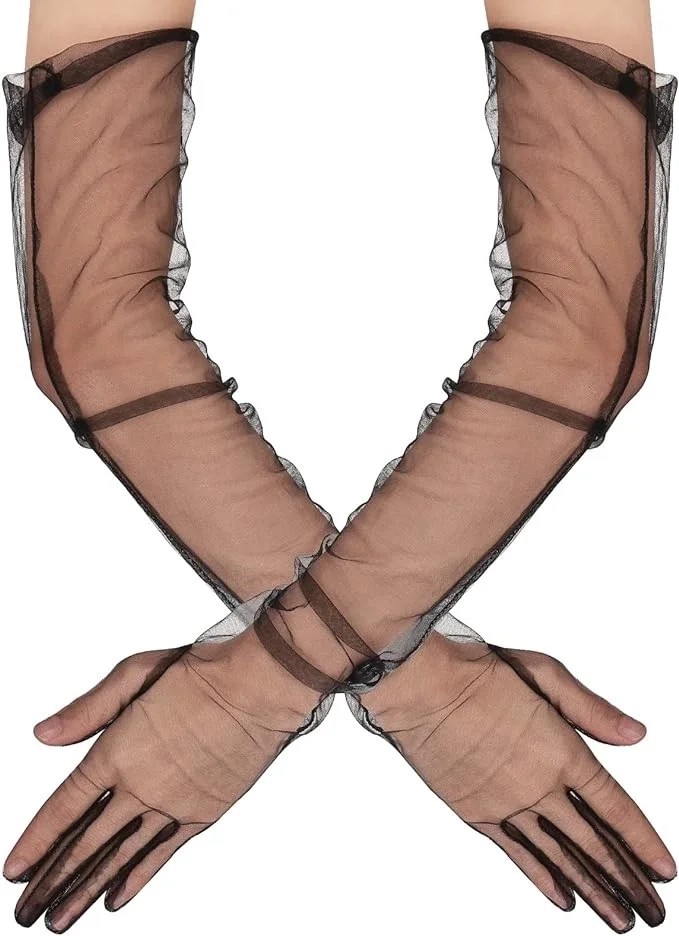 Uzun Boy Likralı Siyah Renk Yetişkin Mega Tül Eldiven