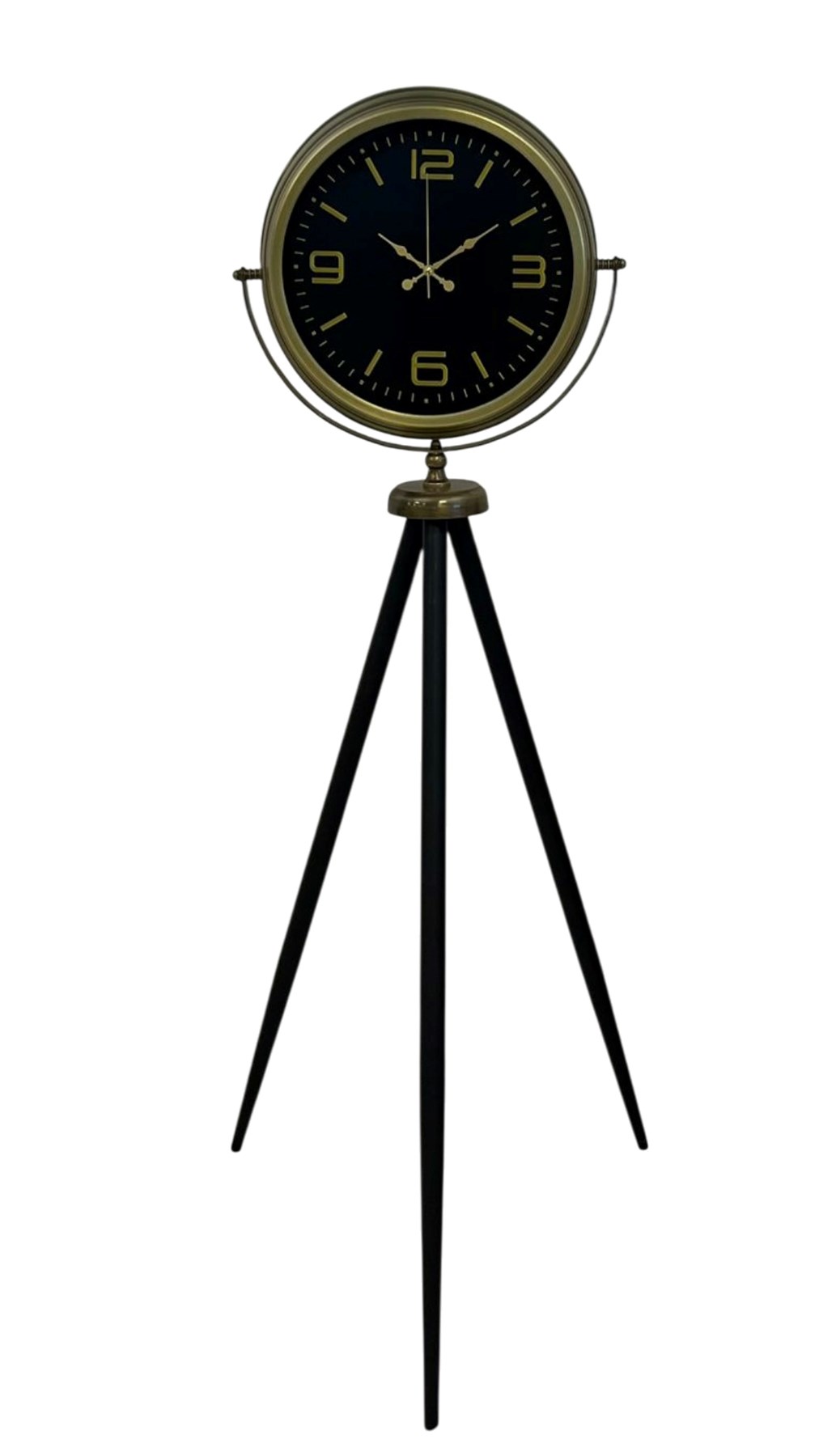 Bu modelin en dikkat çeken yanı; siyah kadran üzerindeki minimal, gold tonlu çizgiler ve zarif rakam detaylarıdır. Gösterişten uzak ama net bir şıklık sunar. Modern klasik, loft, endüstriyel ve çağdaş dekorasyonlarda rahatlıkla kullanılır. Tripod ayak formu ürüne hem dengeli bir duruş kazandırır hem de “vitrinlik” bir görünüm verir. Ofislerde, yönetici odalarında, showroom’larda ve butik işletmelerde konsept dekoru güçlendiren çok iddialı bir tamamlayıcıdır.